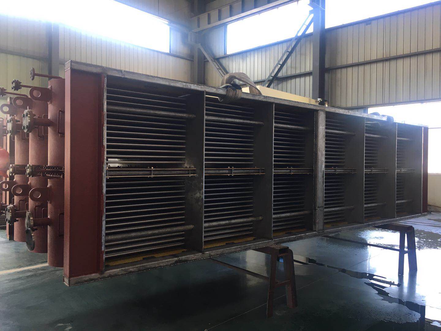 蒸汽-水冷凝器(SWH)是一種管殼式換熱器,殼側(cè)內(nèi)瓷動(dòng)介質(zhì)為污揮水著判,管側(cè)介質(zhì)為暢環(huán)術(shù),利用污院水器氣加熱循環(huán)水。回收行泥水器氣熱量。降低行混水器氣含量。換熱器大小根據(jù)客戶需求以及行泥水著汽物性多數(shù)等實(shí)際情況設(shè)計(jì)。為了方便制造、運(yùn)輸以及安裝,采用模塊化生產(chǎn)模式生產(chǎn)換熱器單元組件,在現(xiàn)場(chǎng)安裝期間,再將組件與組件連接。