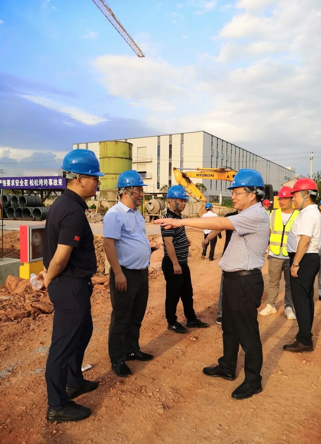 2021年9月10日下午,金華市政協(xié)副主席、民建金華市委會(huì)主委楊堅(jiān)明一行蒞臨宏電環(huán)?!拔磥?lái)工廠”項(xiàng)目部考察調(diào)研指導(dǎo)工作,市政協(xié)副秘書(shū)長(zhǎng)、提案委主任萬(wàn)晨曦,市政協(xié)人資環(huán)委主任方洪海,市體育局副局長(zhǎng)(正局長(zhǎng)級(jí))、民建市委會(huì)副主委朱慧剛,民建市委會(huì)專職副主委陳琳等有關(guān)領(lǐng)導(dǎo)參加調(diào)研活動(dòng)。宏電環(huán)保董事長(zhǎng)鄒可興,公司董事/營(yíng)銷總監(jiān)聶慧君,宏電建設(shè)集團(tuán)董事長(zhǎng)應(yīng)建強(qiáng),宏電環(huán)保高級(jí)顧問(wèn)張益民,項(xiàng)目總指揮徐俊華,宏電環(huán)保董事長(zhǎng)助理黃永征等參與接待。